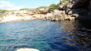 Zona rocosa poc freqüentada pels veïns i turistes de les vivendes pròximes. La cala té forma arrodonida i està protegida del vent; només té dos punts d'accés al mar, un té una escala habilitada i per l'altre punt hi ha una corda amb diversos nusos i així ajudar-se a sortir del mar. Recomanem el bany amb calçat.