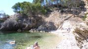 Caló d'es Monjo is a lovely cove of sand, stone and rocks located near Peguera, Calvià. It is a place close to a hotel but little frequented.