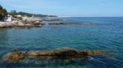 The beach is composed mostly of gravel. It has a wide area to practise scuba diving.