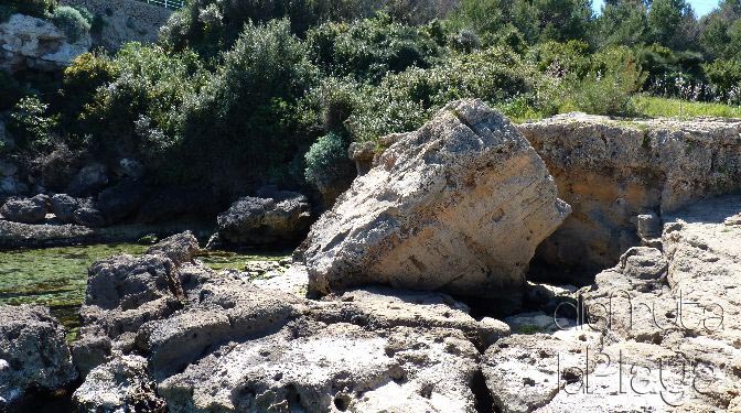 Mollet de Can Tem des Cafè is a rock cove in Llucmajor. The access is well indicated though the arrival at the cove is somewhat narrow. There is a stairway to enter the cove and then there are some metres with plenty of stones and thicket. Excellent views to Palma.
