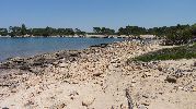 There is a long walk along 5 km of lots of coves. It would be better to go by boat. Algae are not usually cleared off the coast.