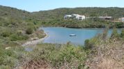 This area is used by fishermen very near the port of Mahón. There are small piers all along the coast. Surrounded by greenery and few houses.