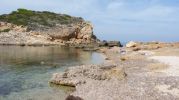 Curiosa zona de baño justo a la derecha de Cala Portinatx. Es la zona de unión de una pequeña isla al resto de Ibiza. Se debe costear para acceder a este lugar, pero con cuidado porque algunos senderos que llevan son muy peligrosos. Buscad siempre la alternativa más sencilla y nada peligrosa.