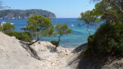 Cala Blanca es una cala de arena, piedra y rocas situada a pocos kilómetros del Puerto de Andratx. Acceso en coche hasta las proximidades y lugar tranquilo.