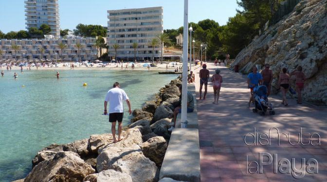 Girar a la izquierda por el Bulevar de Peguera y buscar aparcamiento. La playa se encuentra a escasos metros a la derecha. Es difícil encontrar aparcamiento.