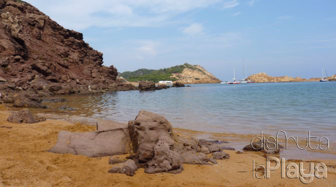 Cala preciosa de arena dorada y acantilado rojizo. Hay una pequeña zona de baño a la derecha de la cala, pero sólo accesible desde el mar, ya que hay una zona acordonada y no se debe pisar. Acceso sencillo por Camí de Cavalls desde Binimel·la. Permitida la pesca con limitaciones, prohibida la submarina.