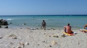 Gran playa en la urbanización de Sant Tomàs. Dos aparcamientos, el más cercano es de pago; el municipal está hacia el este, en la playa de Sant Tomàs. Aguas cristalinas.